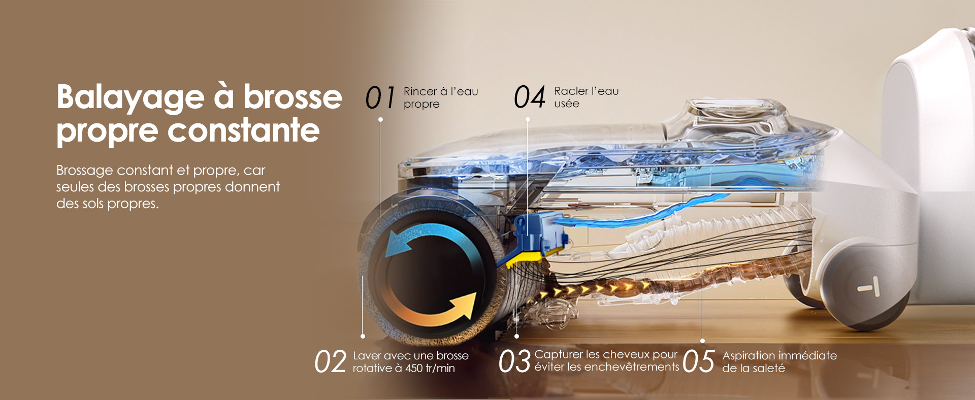 • Balayage à brosse propre constante